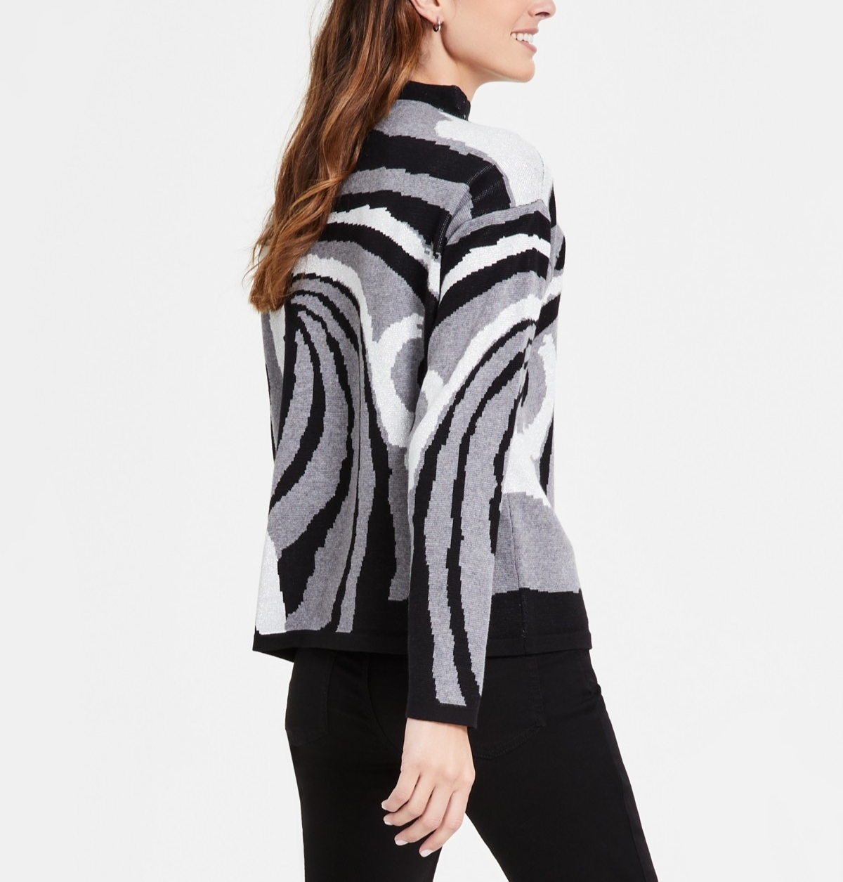 A geometric print lends a sleek finish to this classic and cozy mock neck sweater by Jones New York.