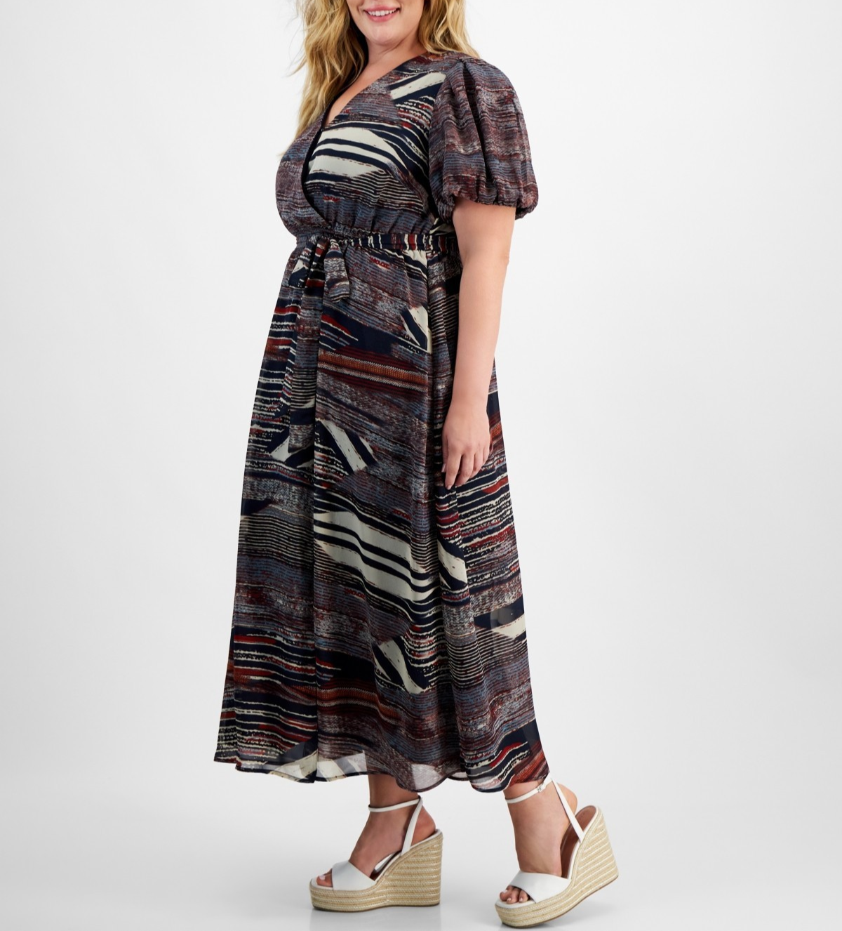 Perfect for your next brunch date, this plus size maxi dress from Robbie Bee features a flattering surplice neckline and a tie at the waist.