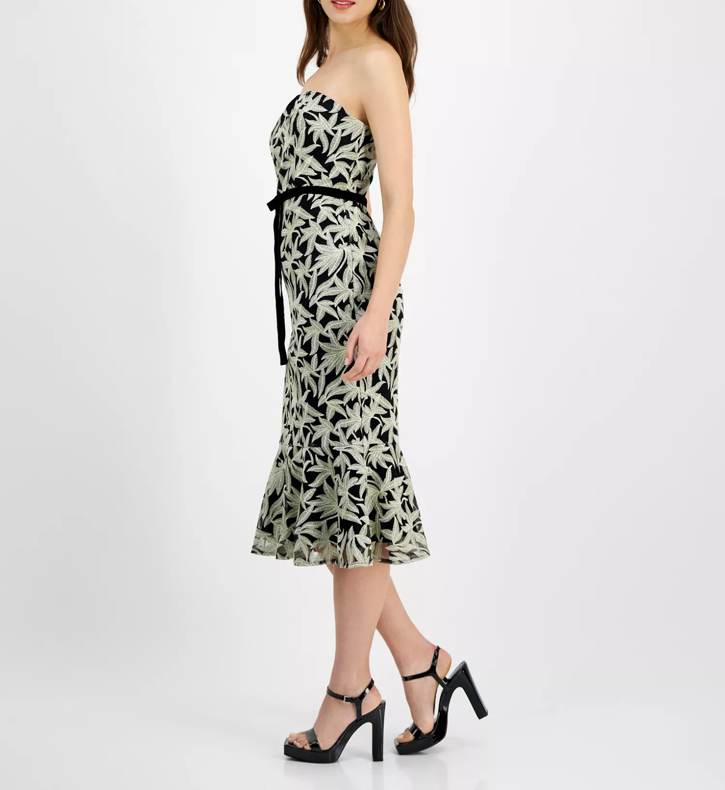 Sam Edelman Women's Embroidered Strapless Belted Dress MSRP $168