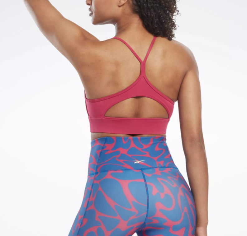 Specifically designed for mid-level sports and activities, this Reebok sports bra is cute and comfy.