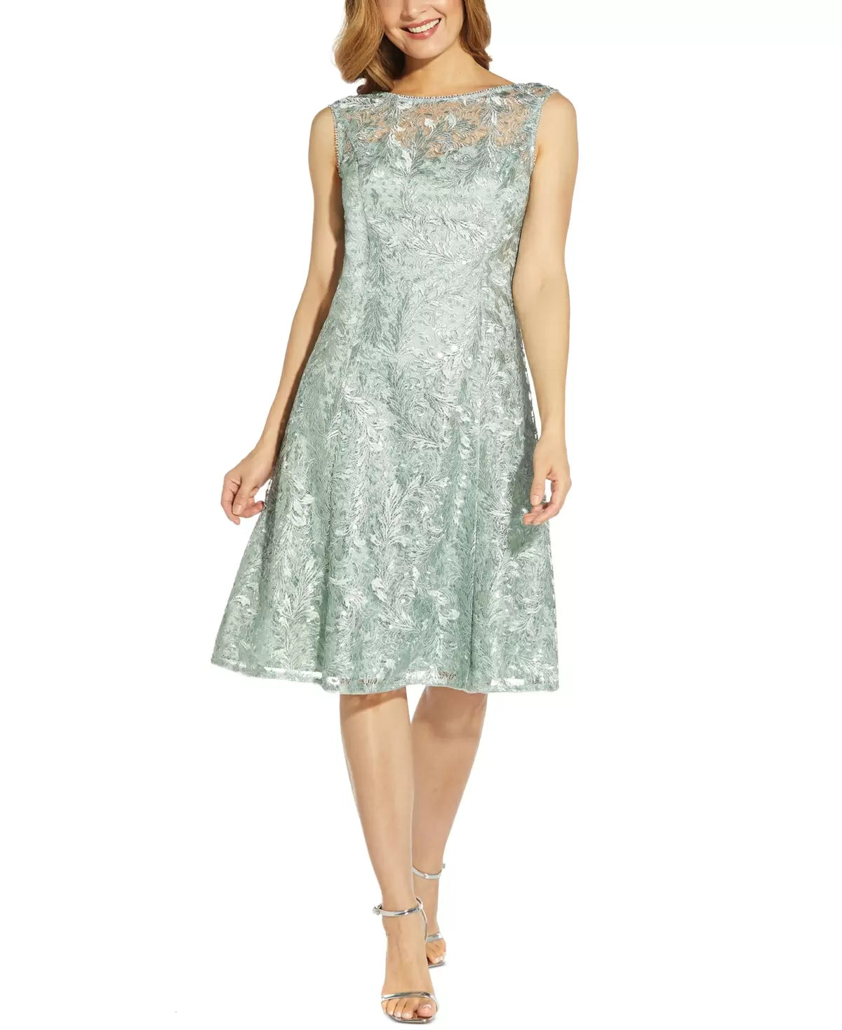 Adrianna Papell Embroidered A-Line Dress