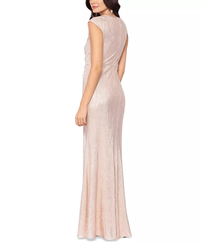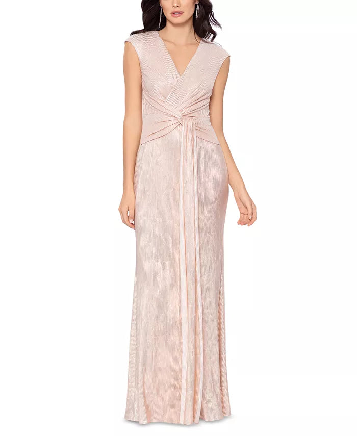 Betsy & Adam Metallic Cap-Sleeve Gown