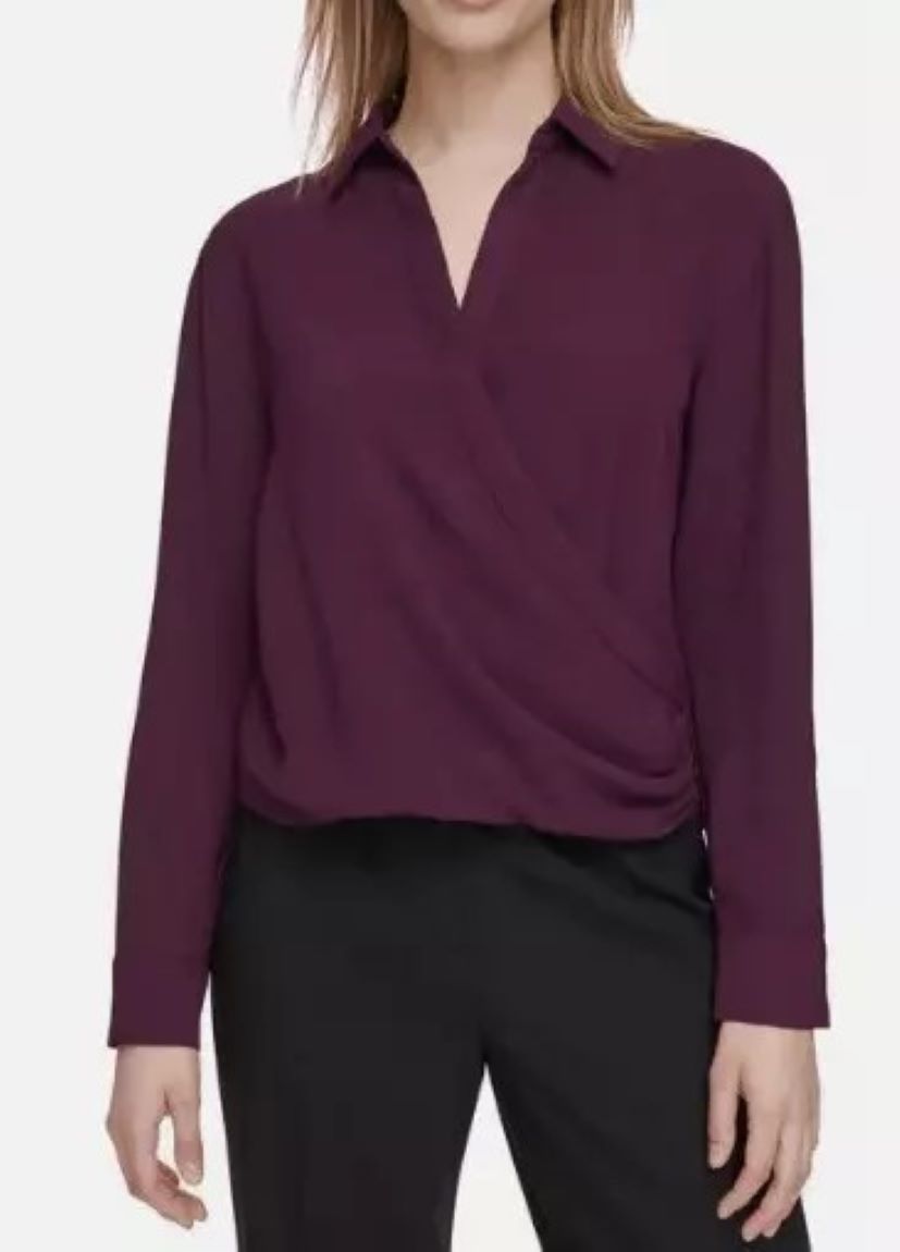 Calvin Klein elevates a classic look in this wrap-style long-sleeve top.
