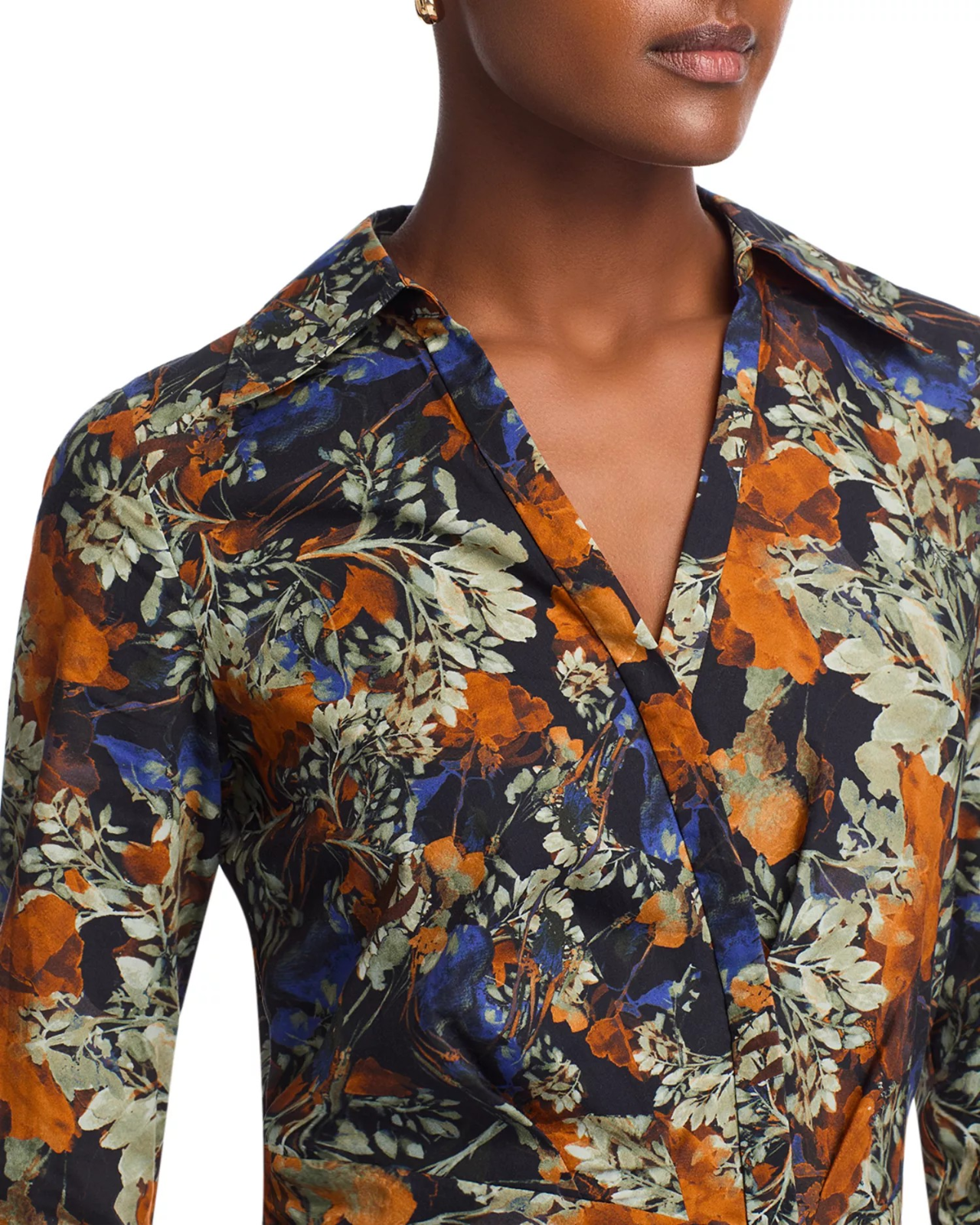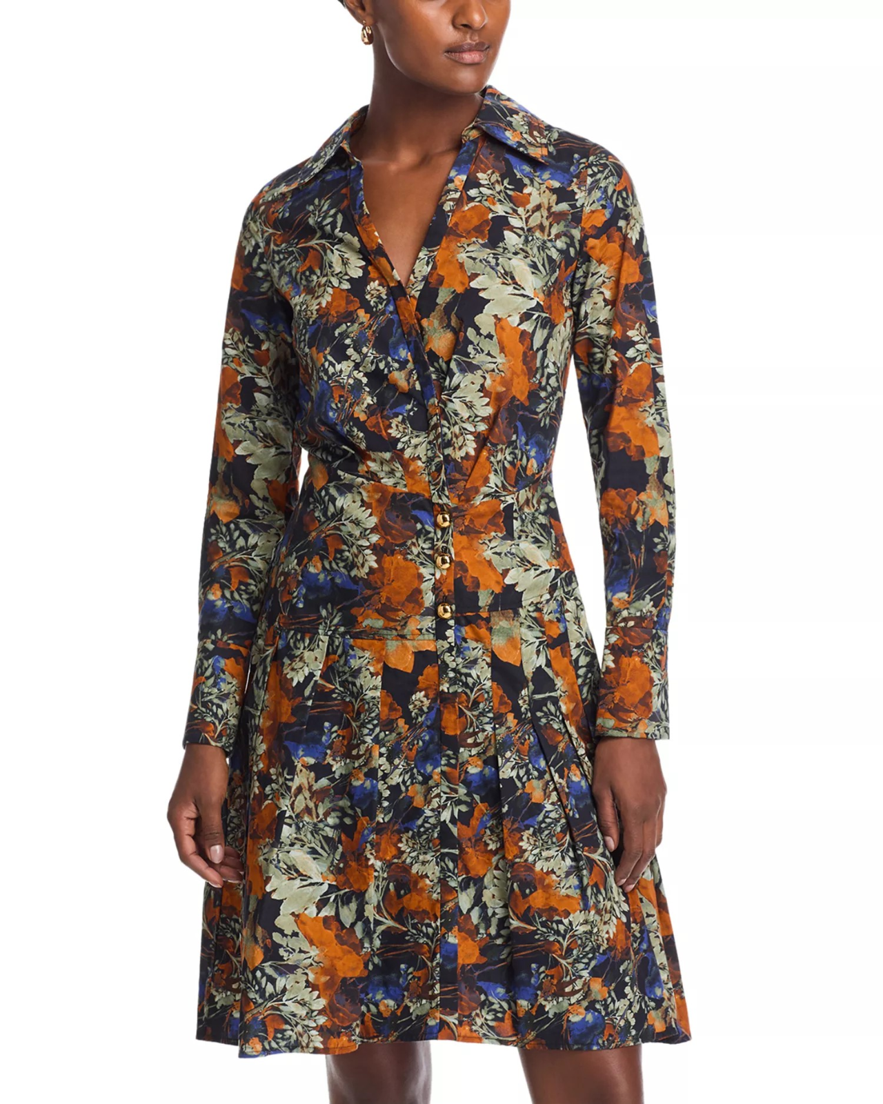 Cut in a drop-waist silhouette, the Laney knee-length shirt dress by Derek Lam 10 Crosby showcases a pleated skirt, blouson sleeves, and a wide point collar.