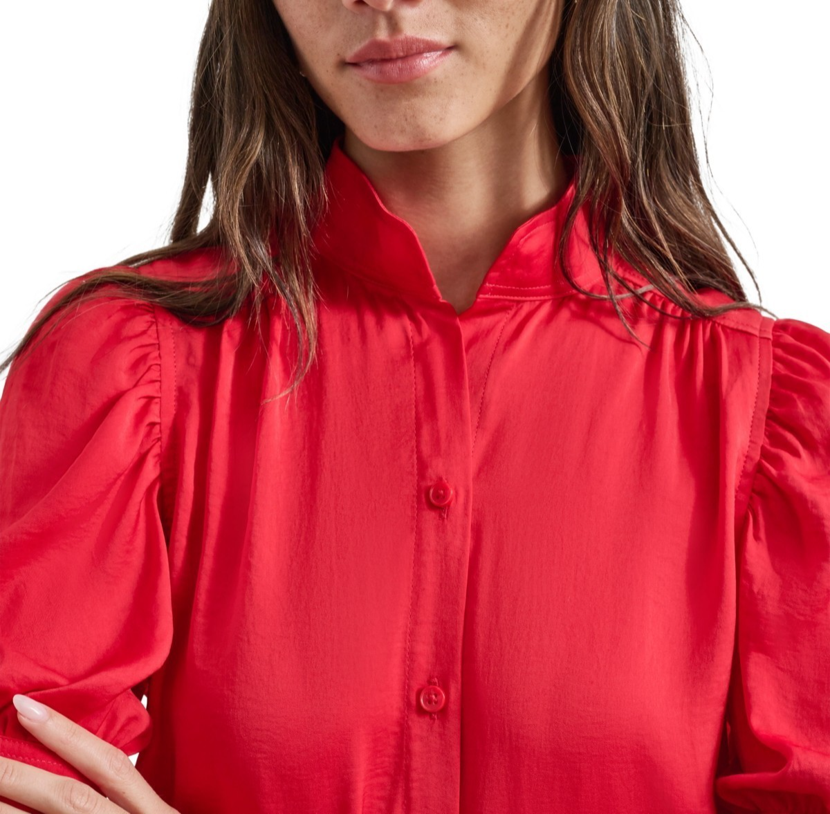 A stand collar balances out the volume of puff-shoulder sleeves on this button-front blouse from DKNY Jeans.