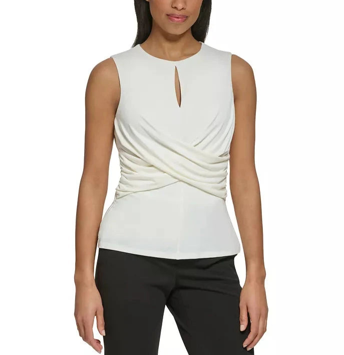 DKNY Jewel-Neck Cross-Wrap Sleeveless Top