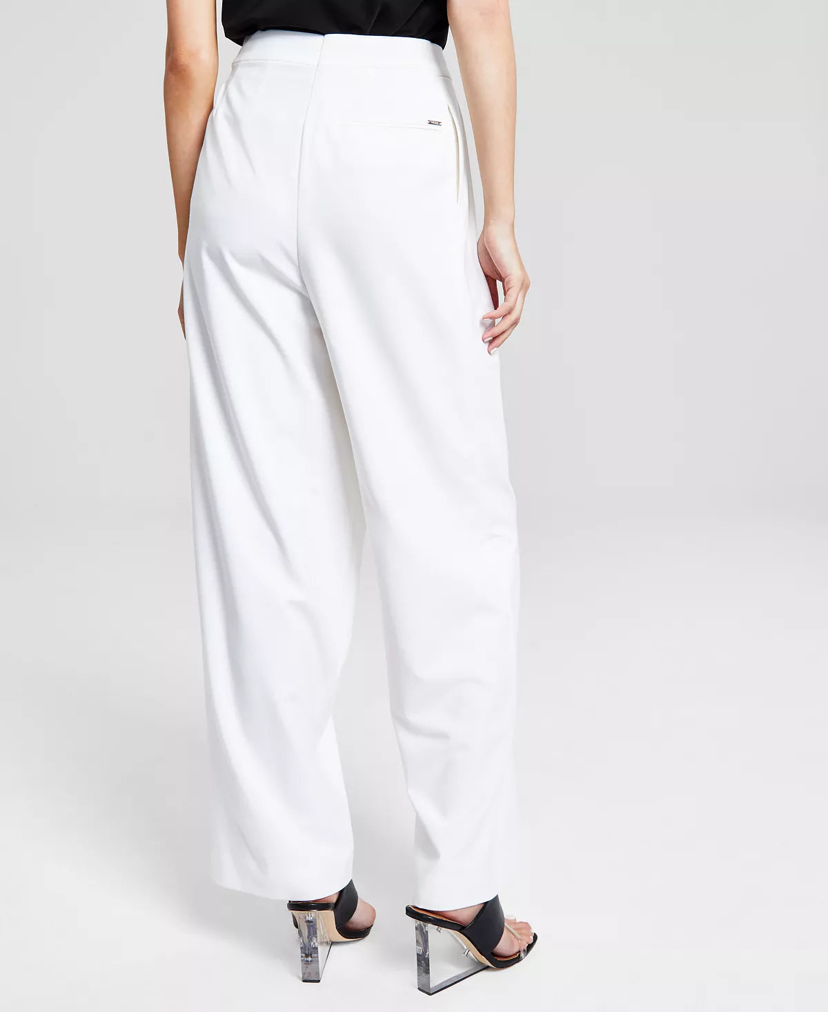 DKNY Straight-Leg Pleated High Rise Asymmetrical Pants