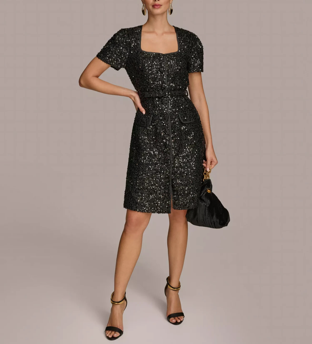 Donna Karan New York Petite Square-Neck Sequinned Dress MSRP $ 109