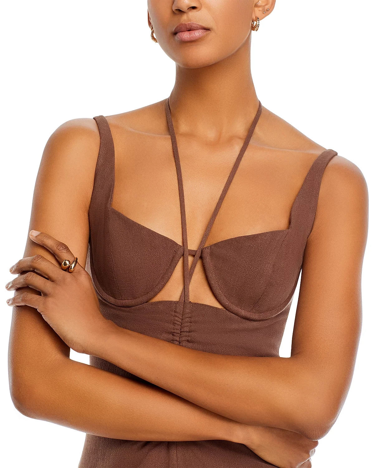 FORE Drawstring Tie Neck Cutout Dress MSRP $98