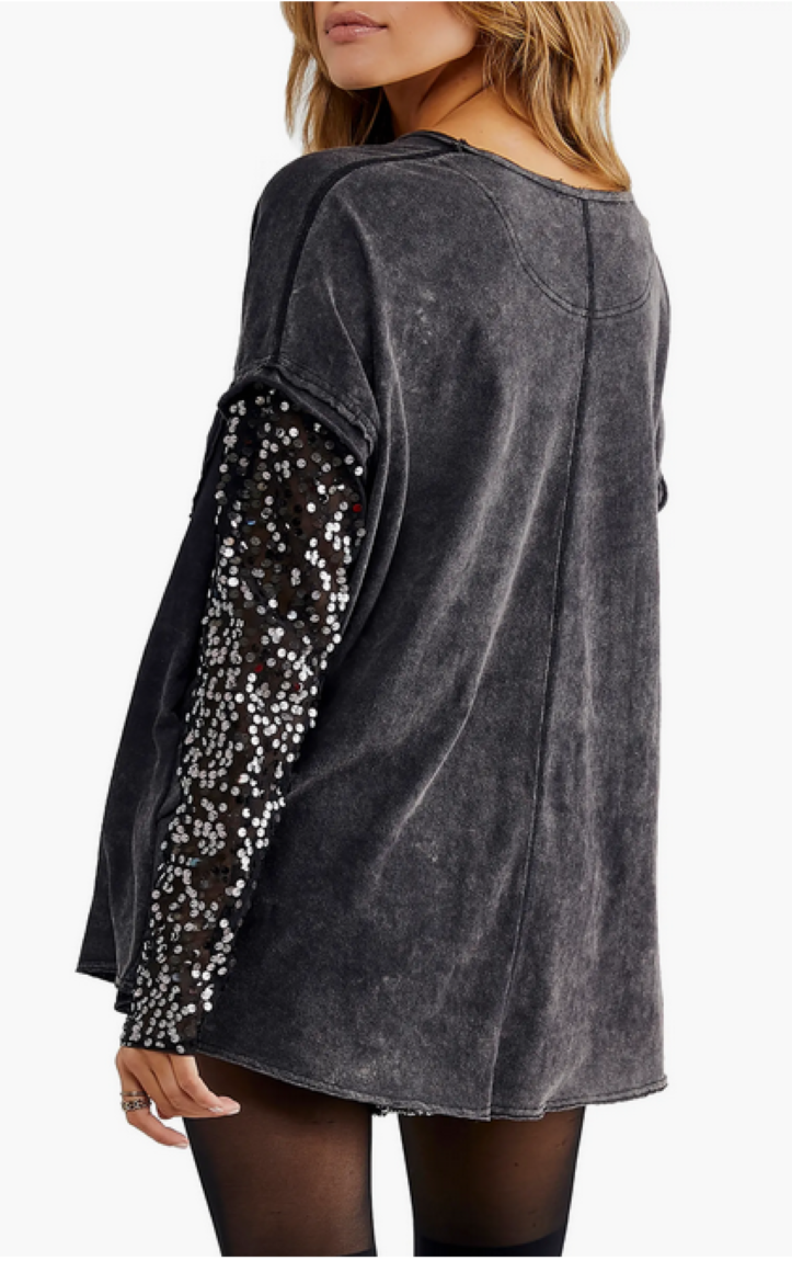 Free People Celine Sequined Sleeve Tee