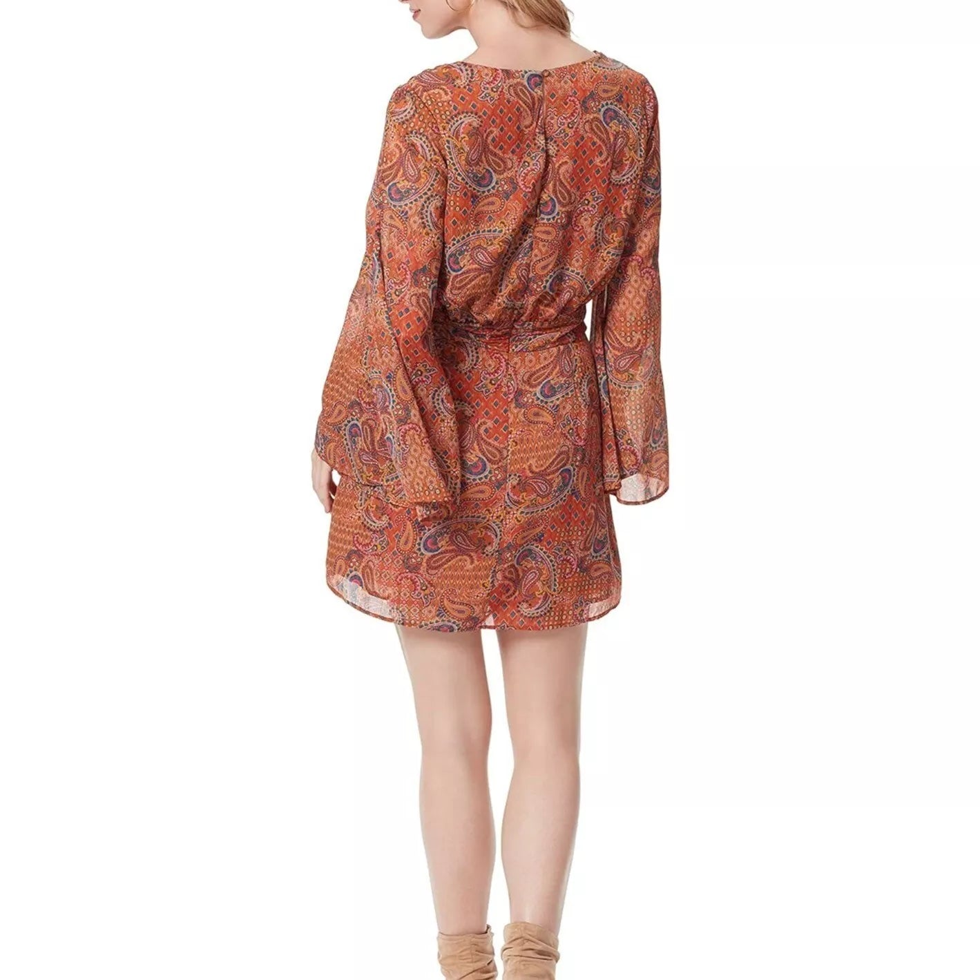 Breezy and chic from its trumpet sleeves to its mini silhouette, Jessica Simpson's plus size Amelia dress is super chic with ankle booties.