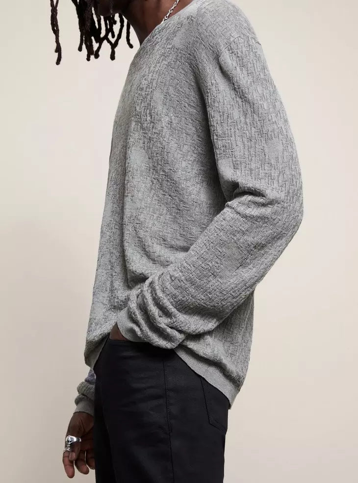 Sit comfortably but always stand tall in the Jacquard Stitch Crew Neck Sweater. The linen blend is cut to a complimentary crew neck shape with a unique jacquard stitch, creating all important texture throughout. An update to your seasonal wardrobe that just makes sense.
