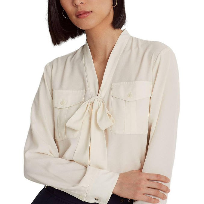Add a luxurious and feminine touch to your look with the LAUREN Ralph Lauren® Crepe Tie-Neck Shirt.