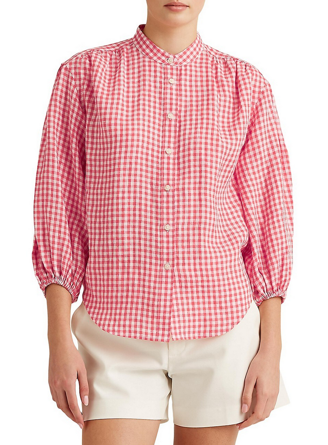 LAUREN RALPH LAUREN Puff-Sleeve Gingham Top
