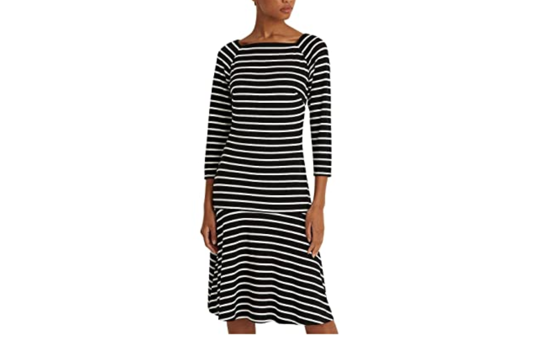 With the allover playful stripes and drop-waist silhouette, the LAUREN Ralph Lauren Striped Drop-Waist Dress is sure to bring an edge to your casual style.