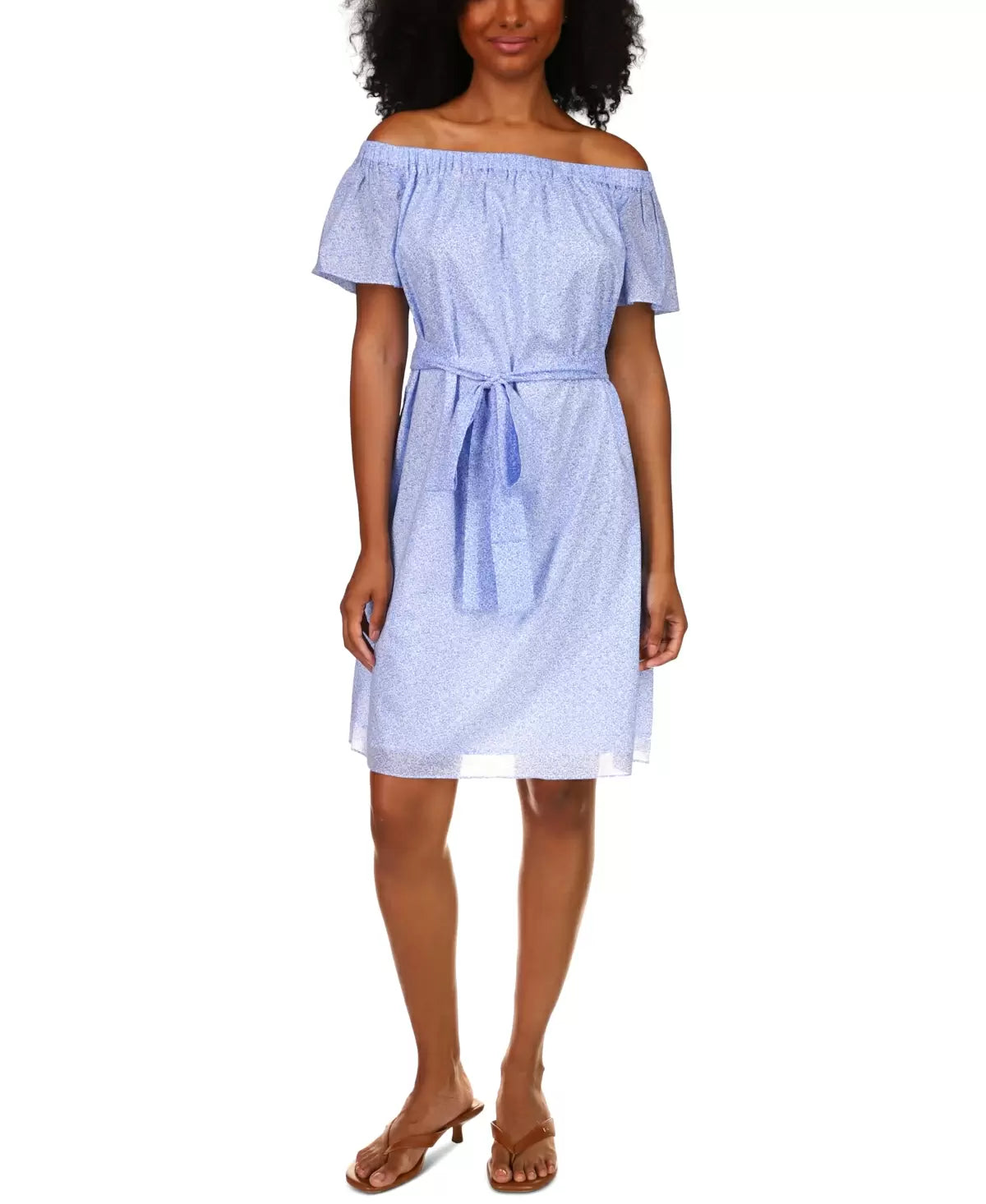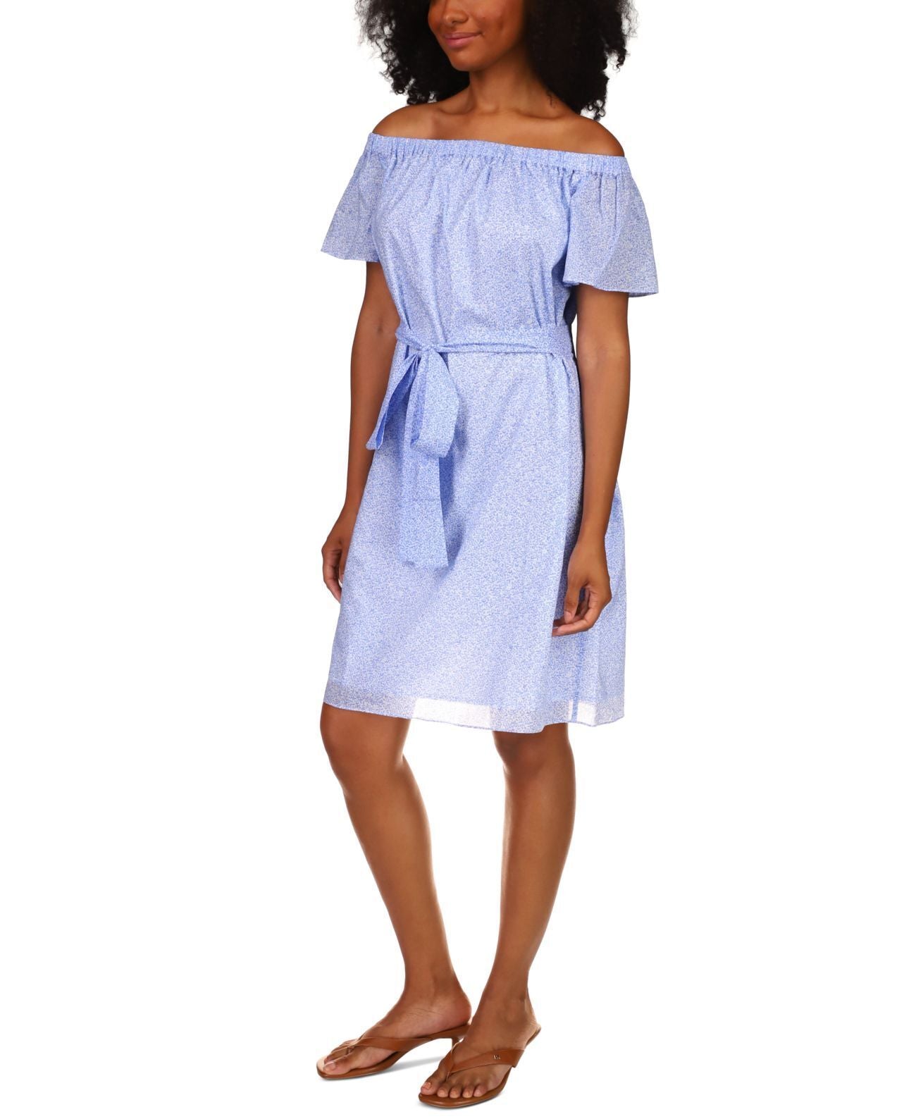 Undeniable fresh style from Michael Michael Kors. This dress is featured in a charming print and finished with a chic off-the-shoulder neckline.