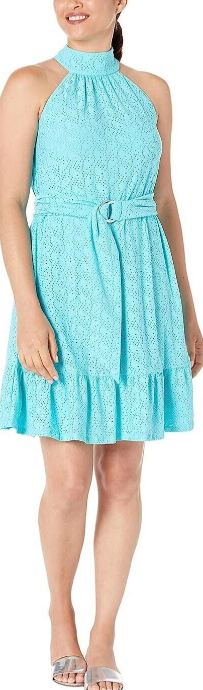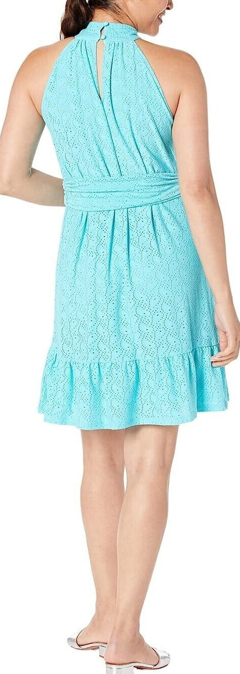 Keep it short and sweet with MICHAEL Michael Kors. This sleeveless  dress features allover eyelet and a kicky ruffled hem.