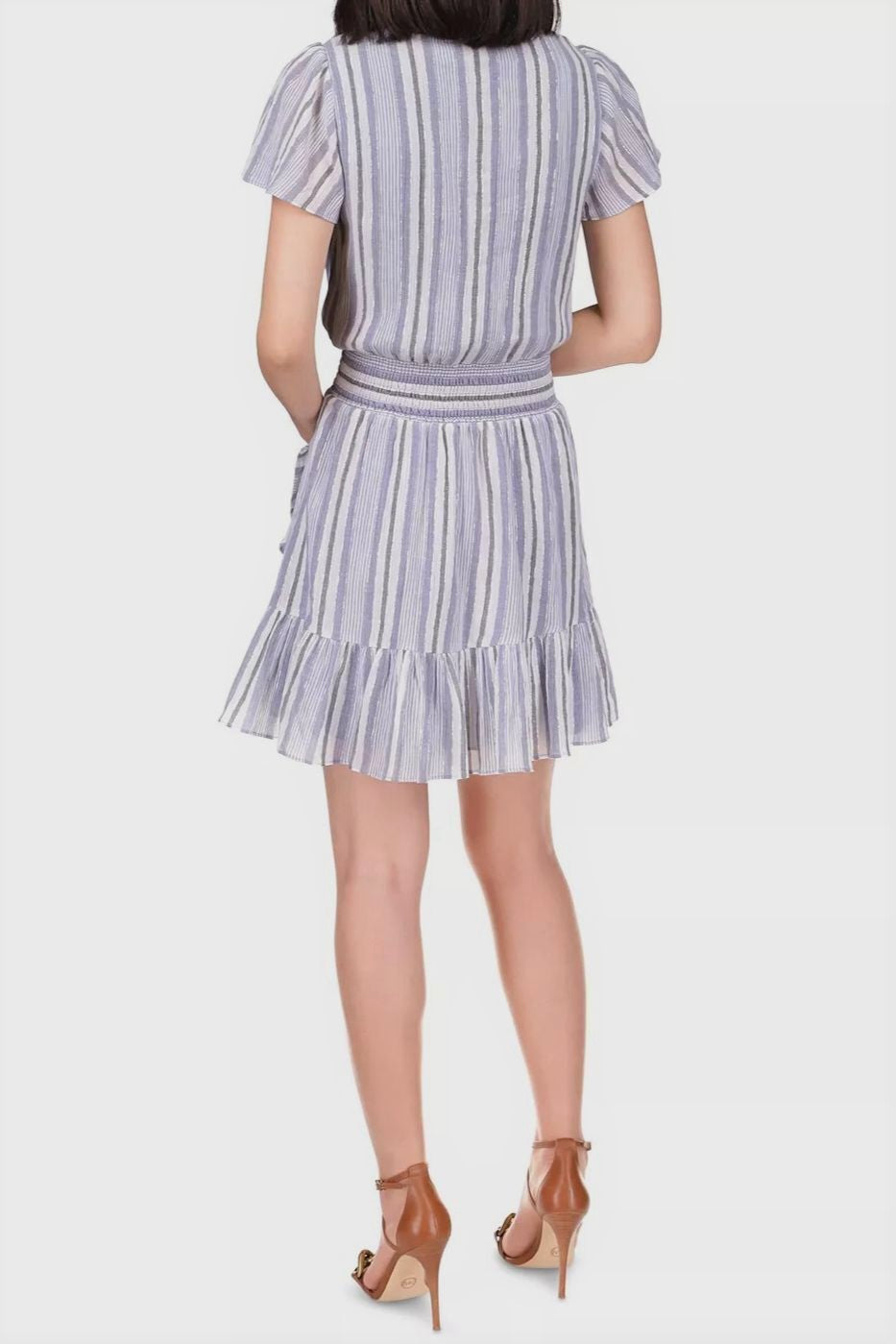 Michael Michael Kors adds a playful flourish to this ultra-chic short sleeve wrap dress, finished with a fitted waist and ruffled skirt.