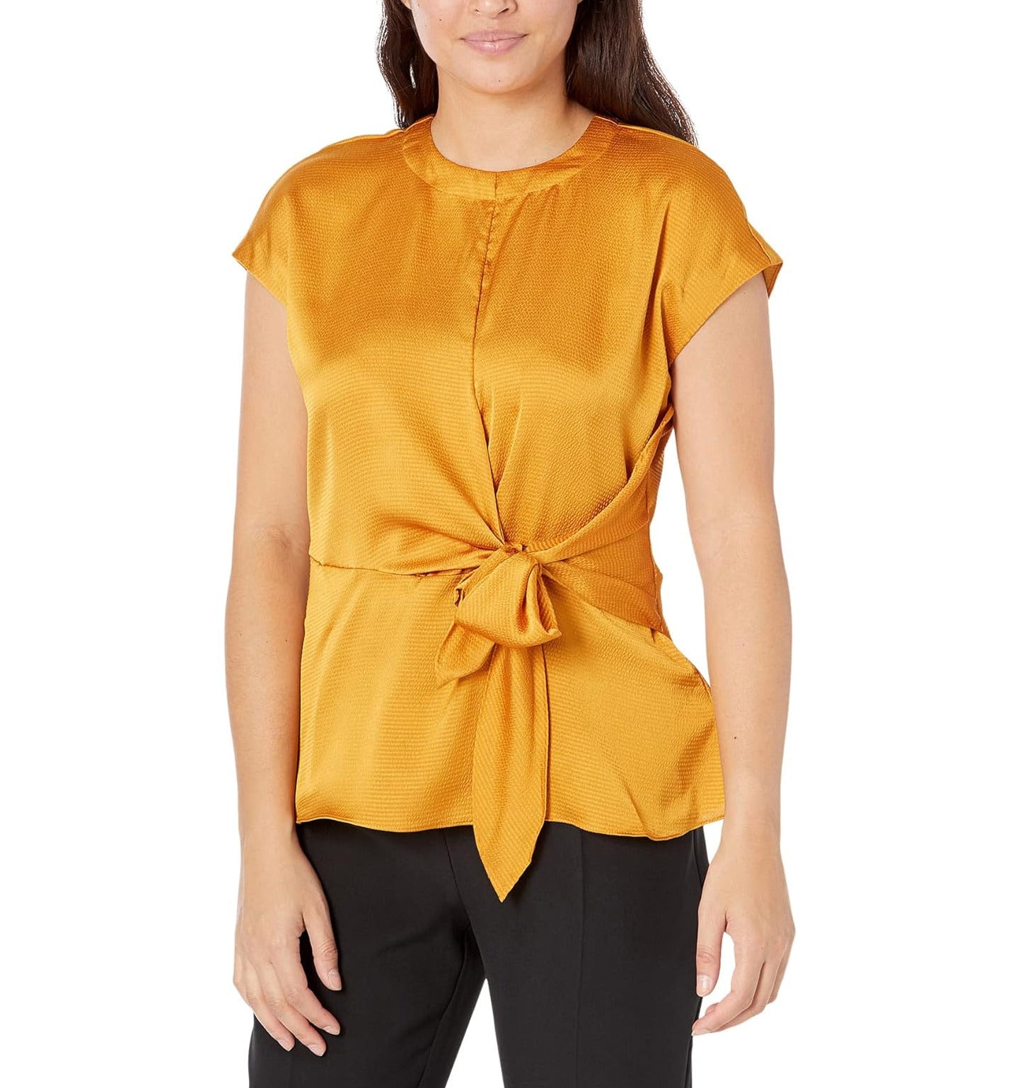 Elevates your style in the figure-flattering MICHAEL Michael Kors® Short Sleeve Wrap Top with a self-tie to cinch the waistline.