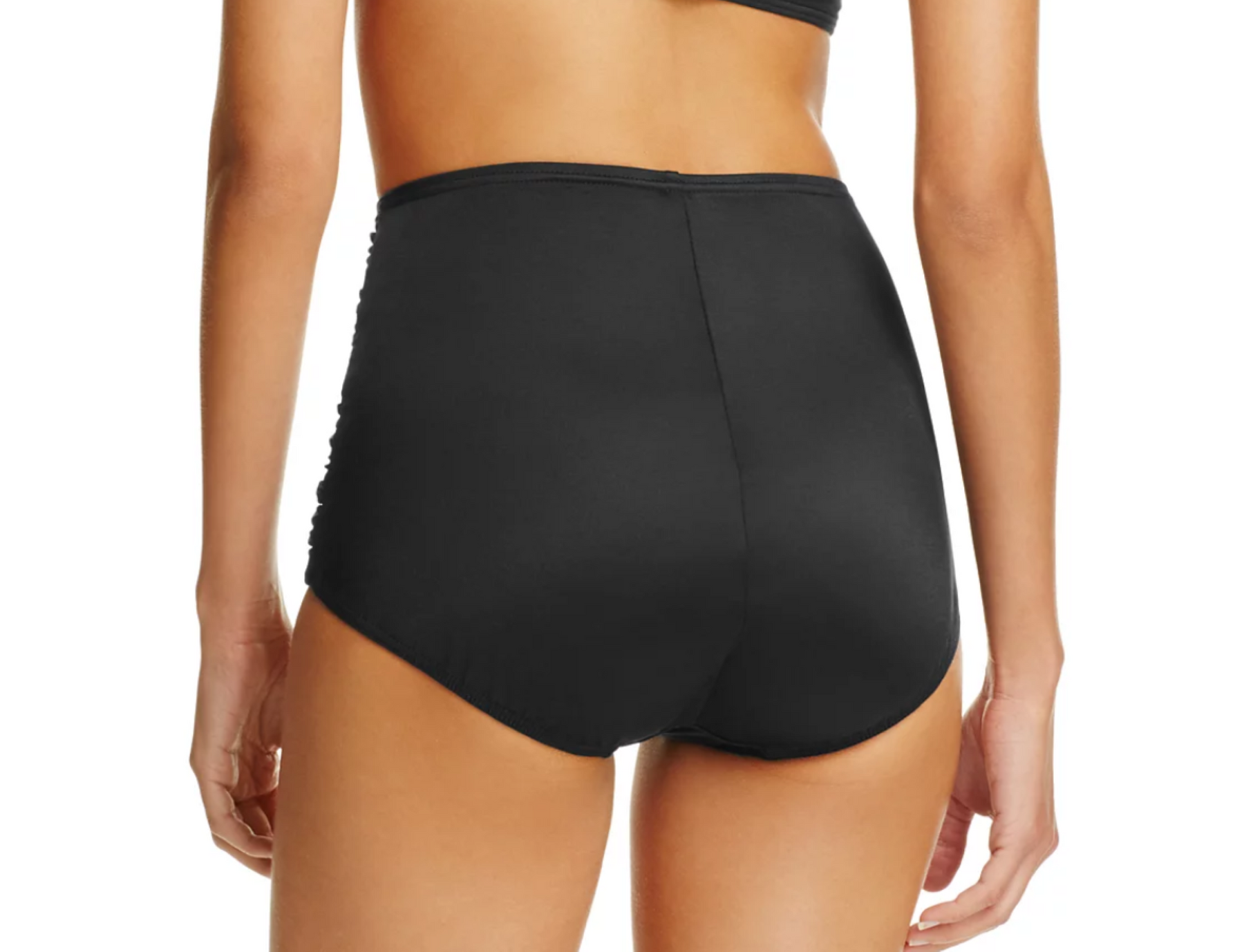 Miraclesuit brings retro into right now with this ruched high-waist bikini bottom, befitting of a beach bombshell.