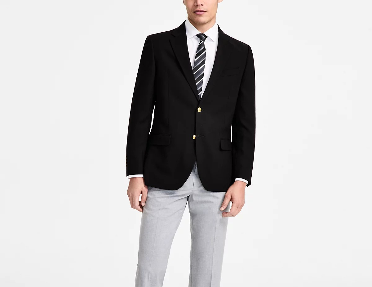 Designed with stretch performance fabric for a flexible, comfortable fit, this versatile solid-tone blazer from Nautica is a piece that belongs in every closet.