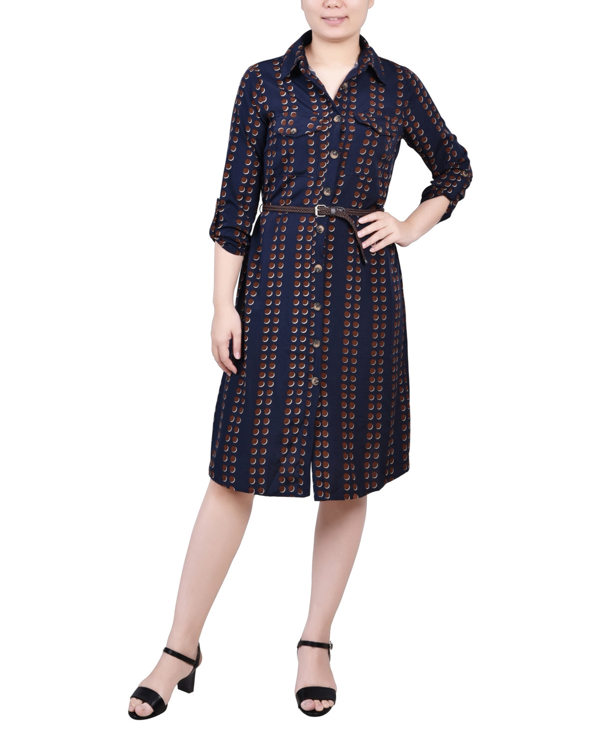You'll always be in style with this classic shirt-dress from NY Collection with its full button front.