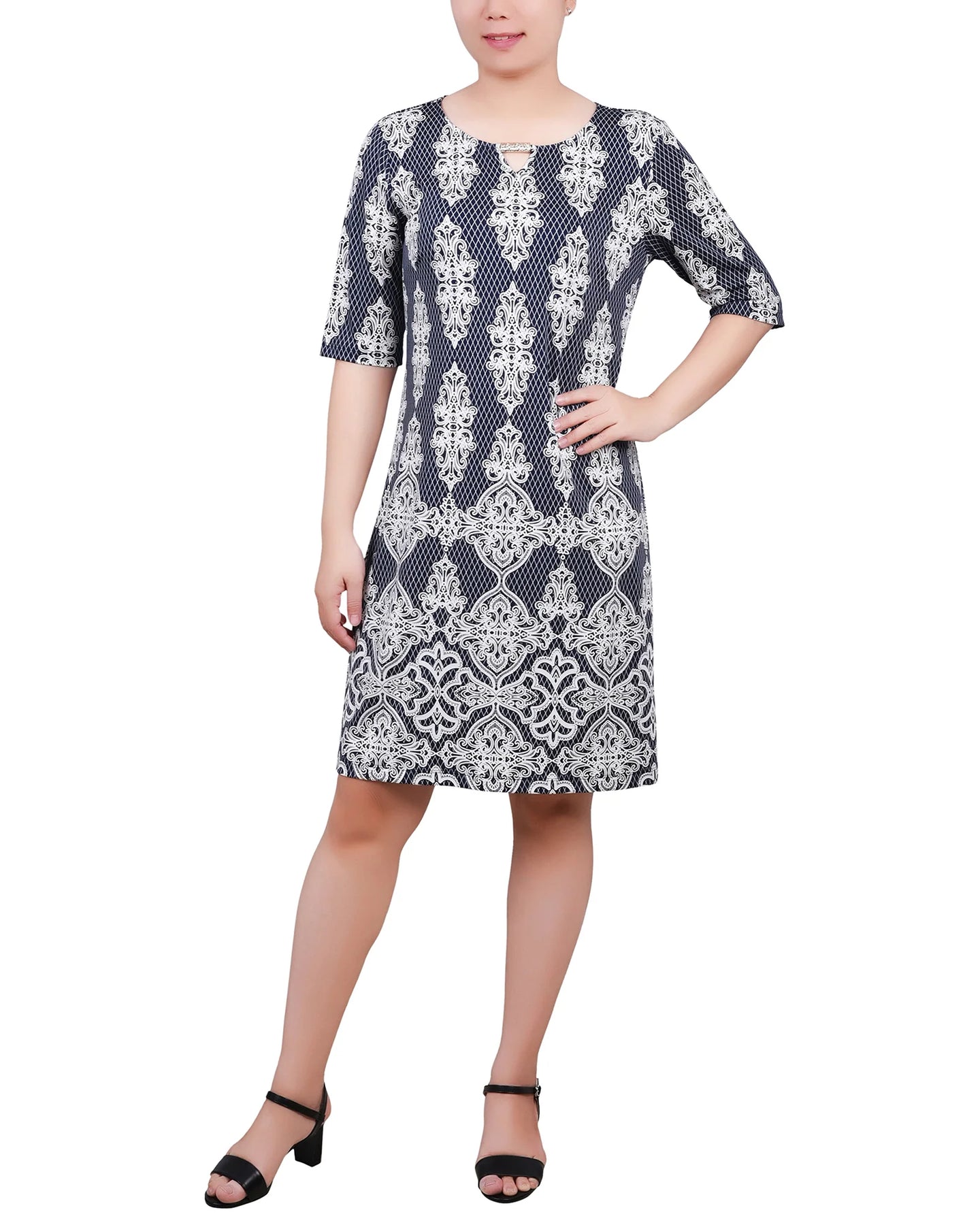 Ny Collection Elbow Sleeve Dress with Hardware