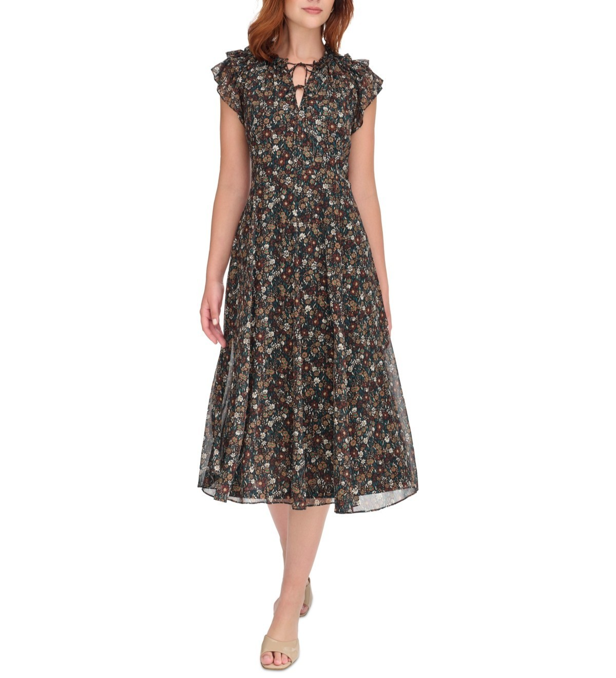 Tommy Hilfiger Tie-Neck Flutter-Sleeve MIDI Dress MSRP $ 129