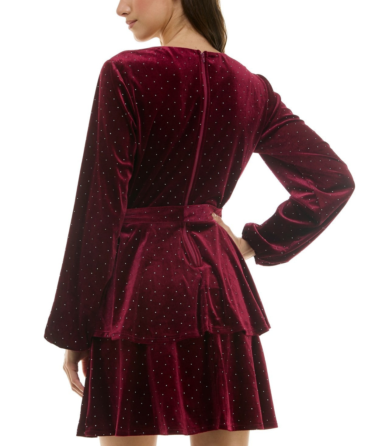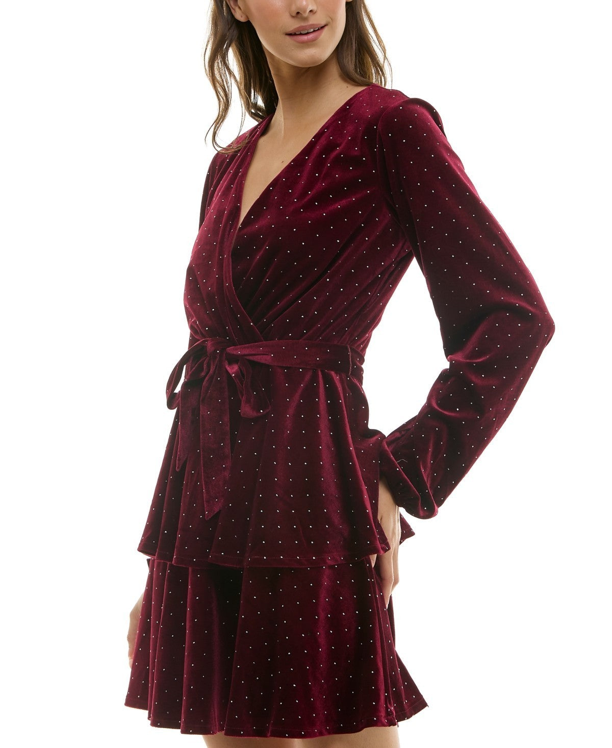 Holiday, celebrate! Shine bright this party season in this velvet fit & flare dress from Trixxi, flaunting a rhinestone finish.
