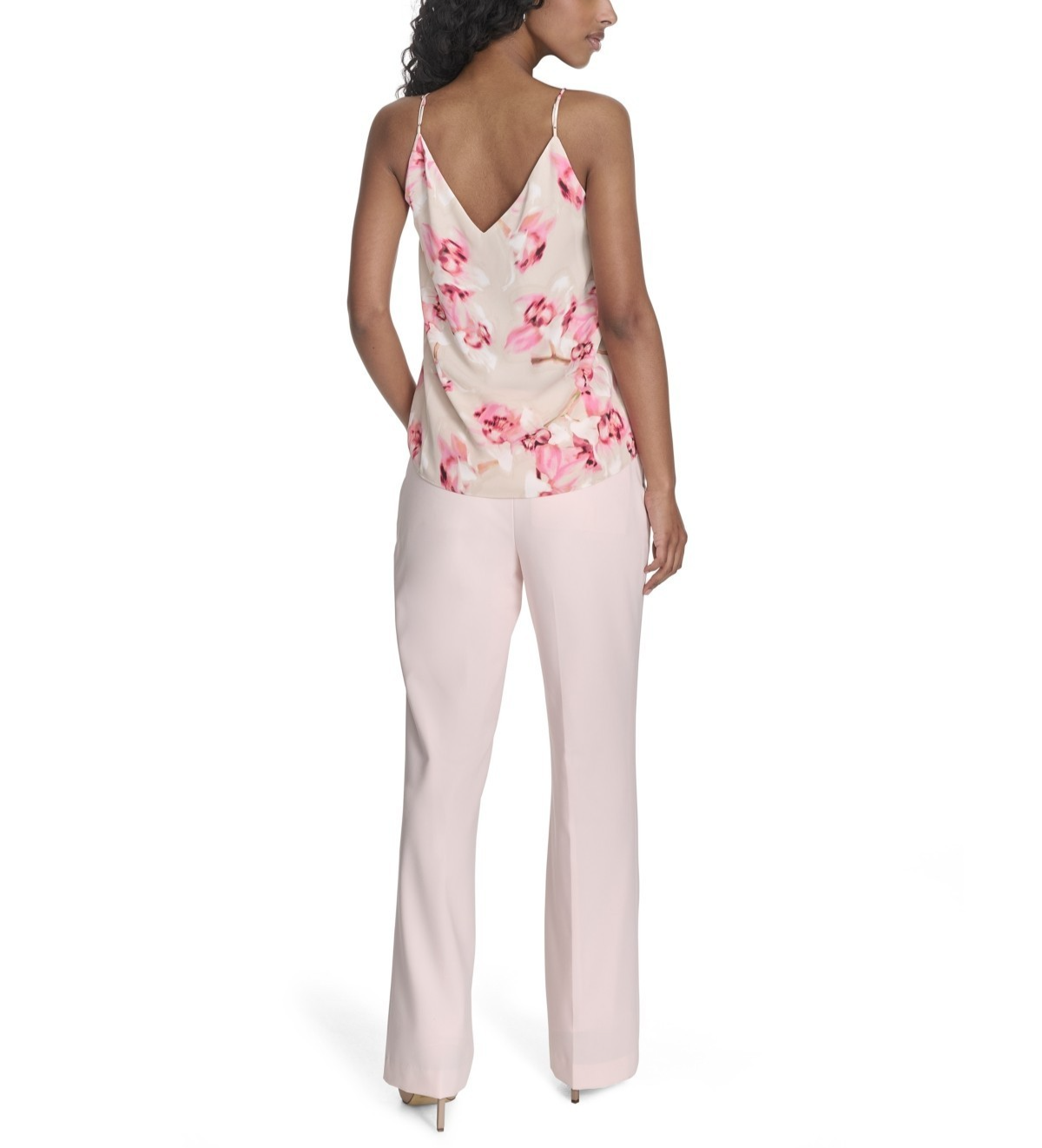 Calvin Klein's beautifully printed V-neck top features a sleeveless silhouette that allows for easy layering, making it a versatile piece for your wardrobe.