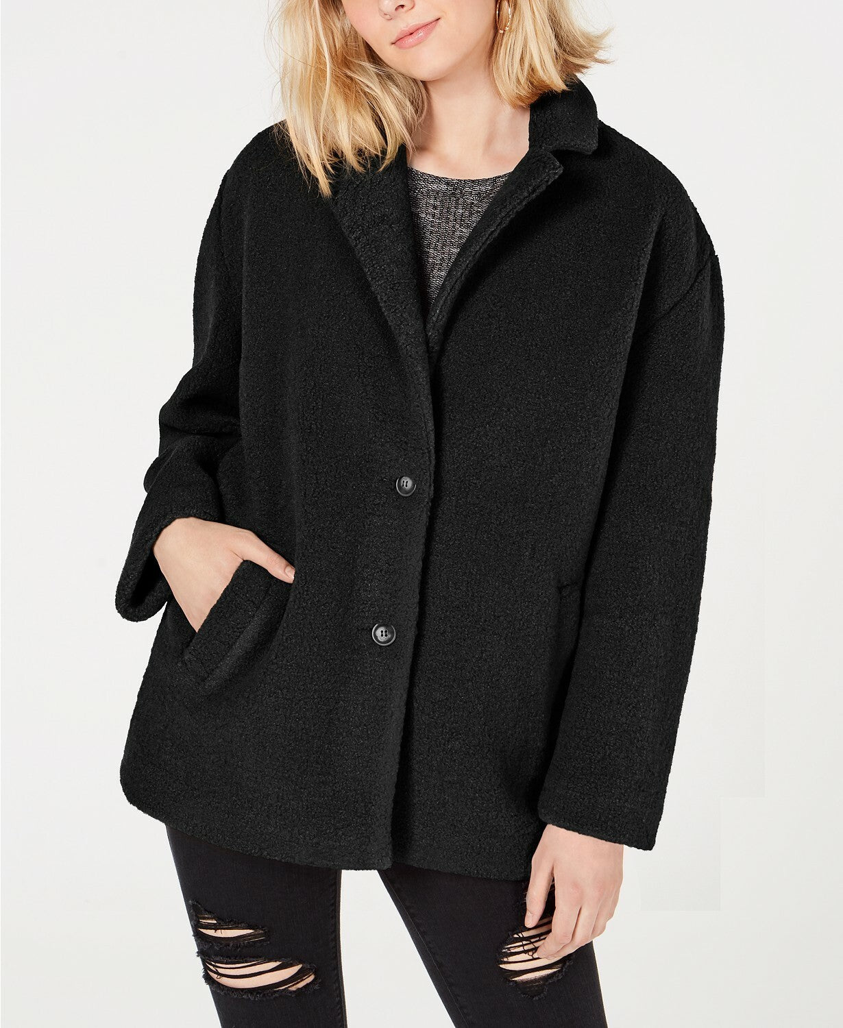 Collection B gives your look a fierce finish with this playful faux-fur coat, designed with a single-breasted front and notched collar.