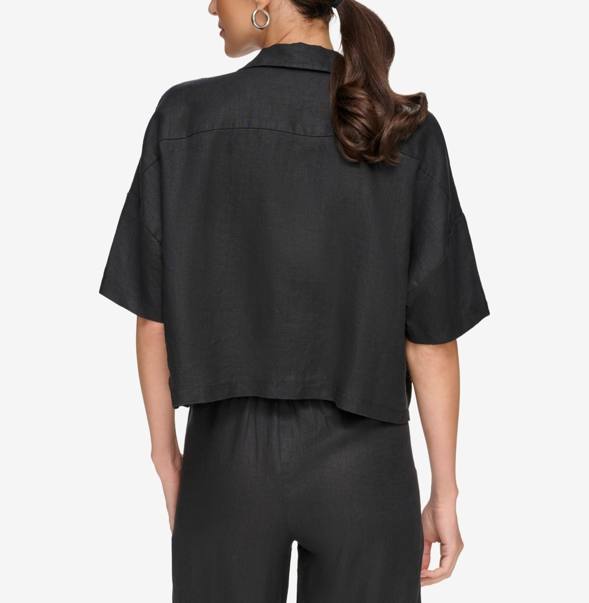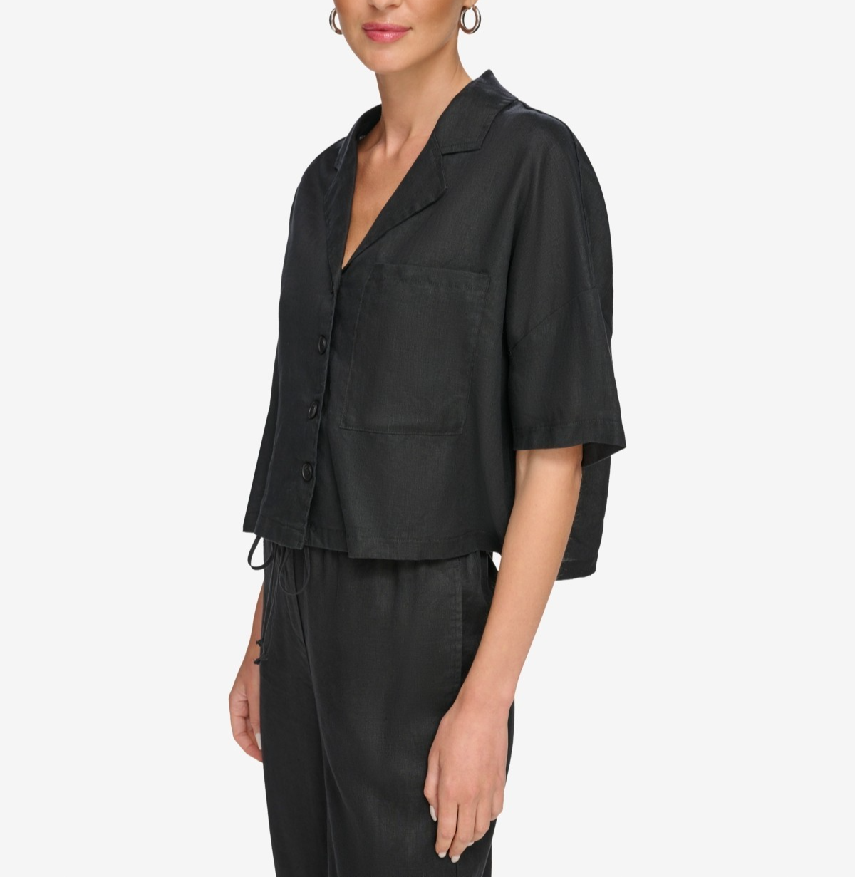 Framed by perfectly-slouchy dolman sleeves, DKNY's button-front linen top is a versatile wardrobe essential that can be easily dressed up or down.