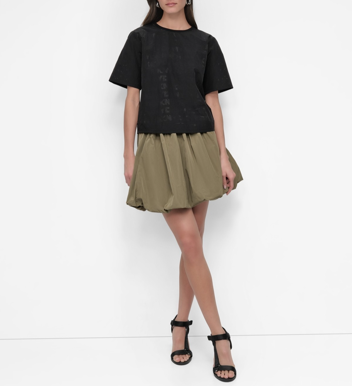 A simple silhouette is given a statement style thanks to a perforated logo of a brand we all know and love...DKNY.