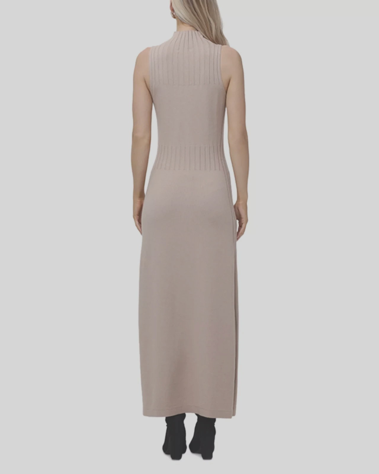 Funnel neck Sleeveless Pullover style A-line silhouette Side slits at hem Fitted at the bust and waist, relaxed at the hip Designed for floor-length look Polyester/viscose/nylon Machine wash Imported