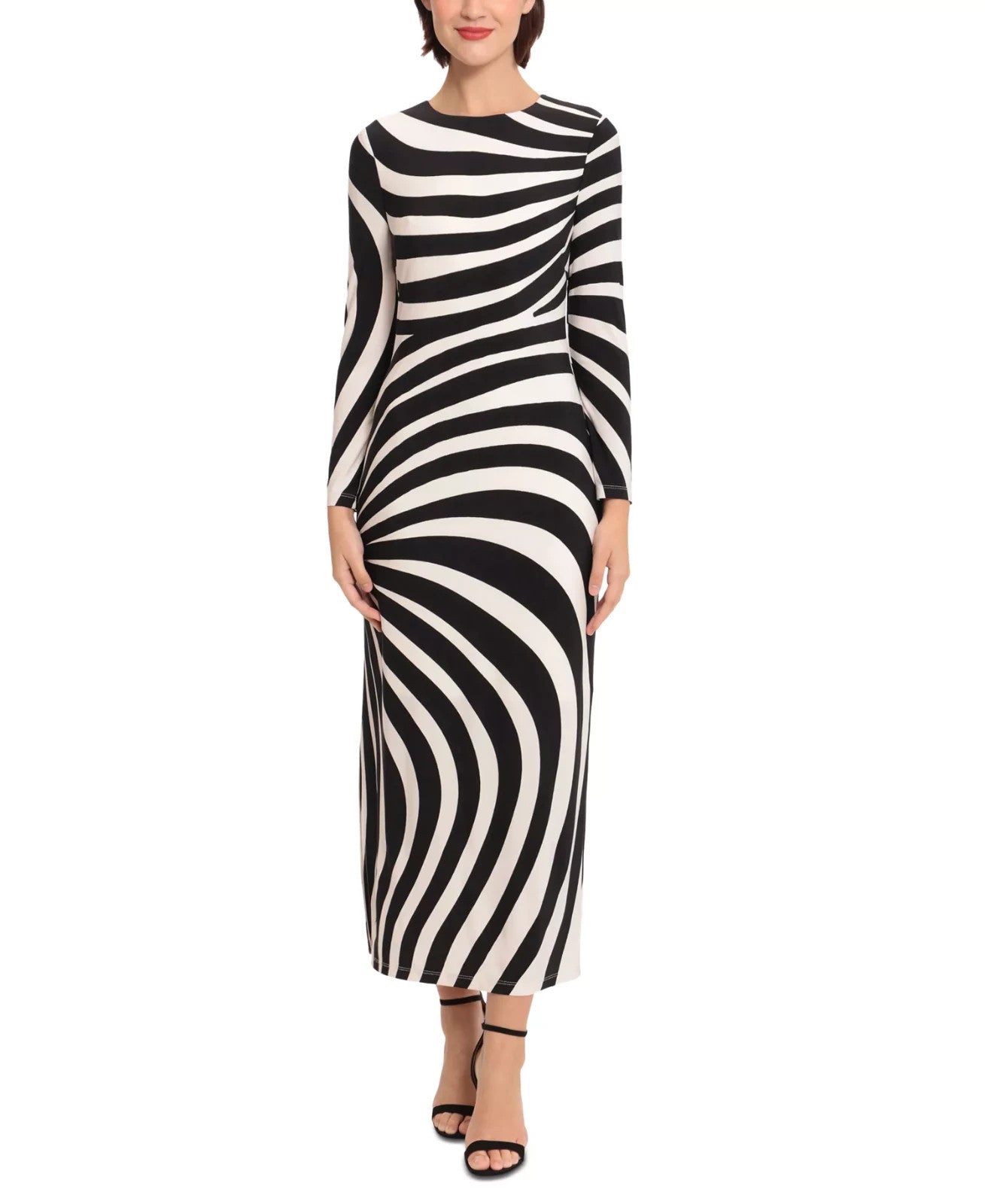 Curving stripes lend modern sophistication to this women's dress from Donna Morgan, pair with heels for a chic finish.