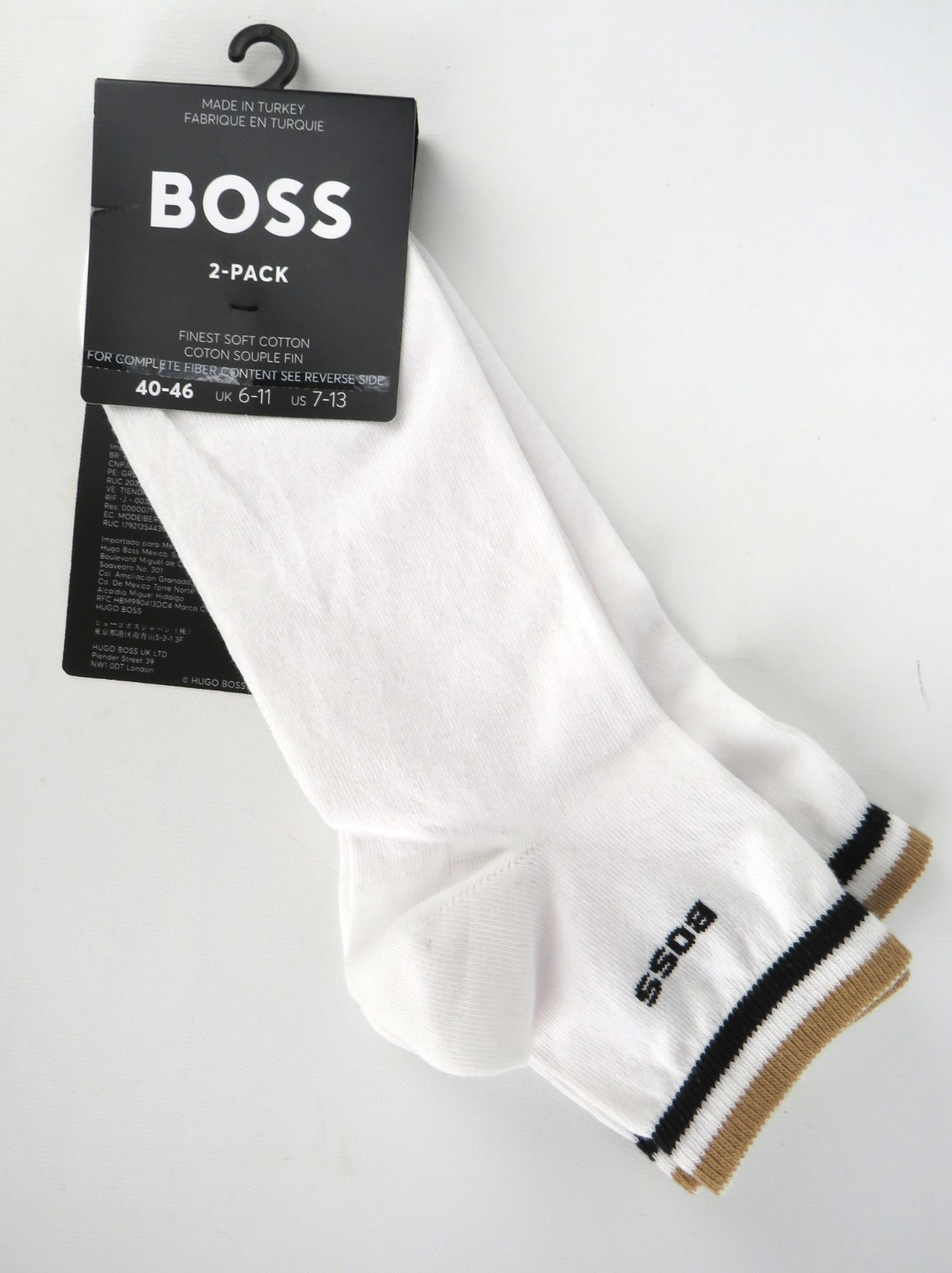 A duo of quarter-length socks by BOSS Menswear. Crafted in stretch-cotton, these socks offer everyday comfort. Signature-stripe cuffs.