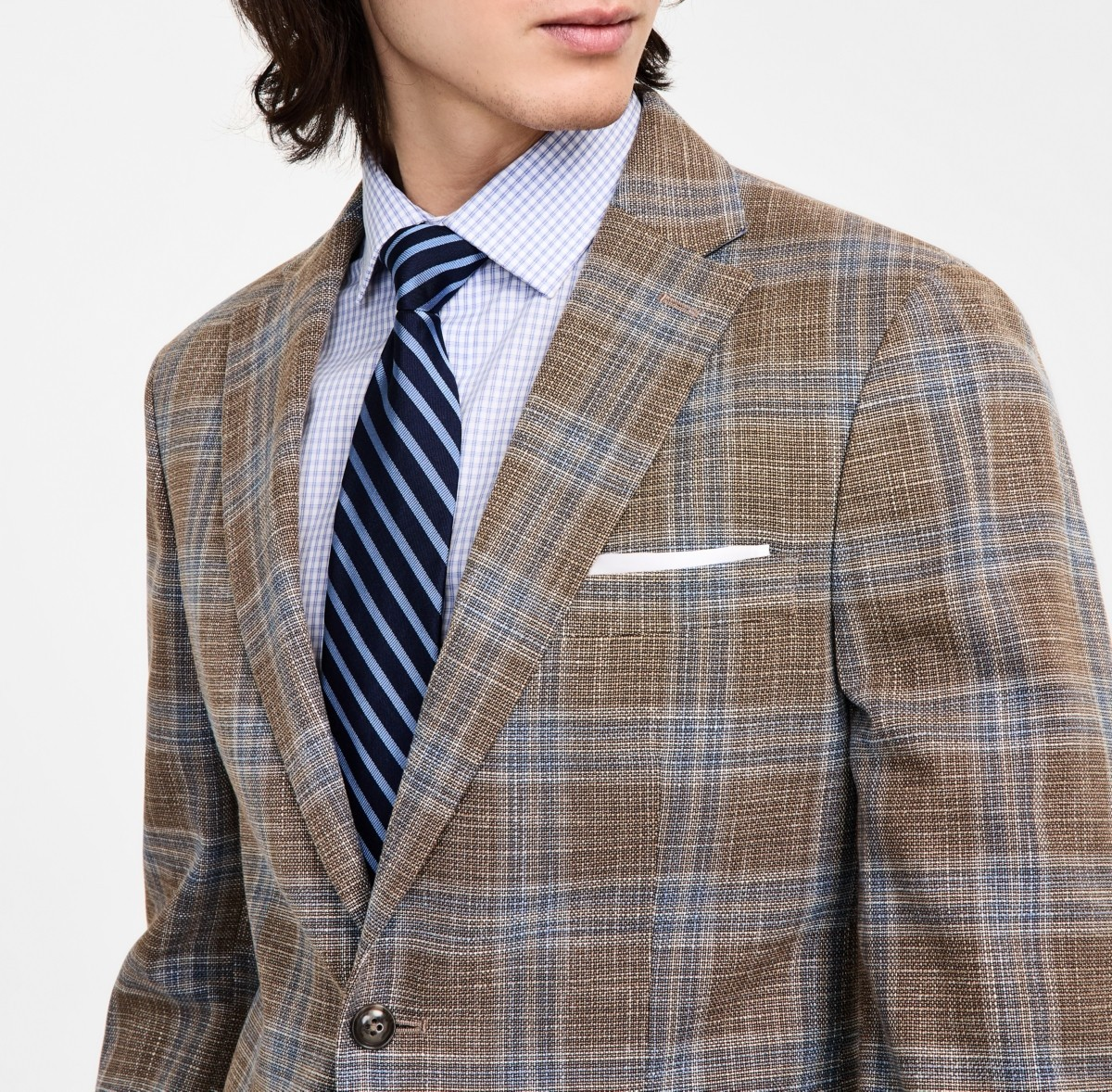 • Modern fit features an athletic fit through the shoulders, chest, and waist with higher armholes and trimmer sleeves