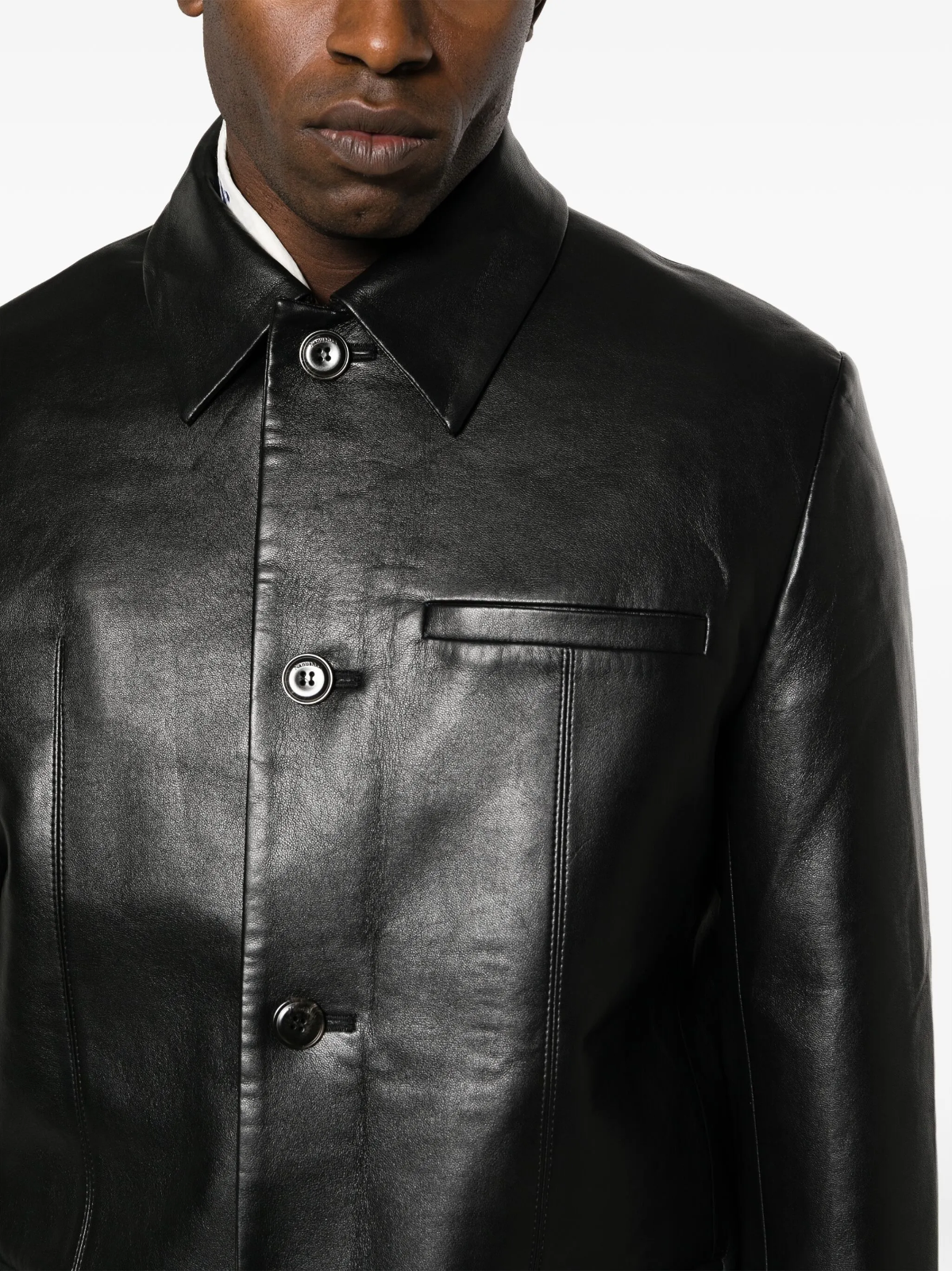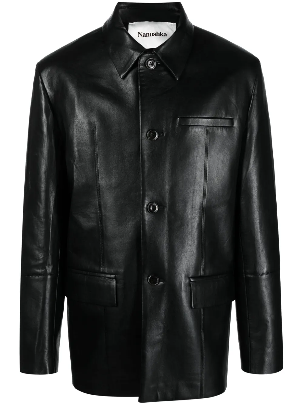 Channelling Nanushka’s propensity for responsible production, this Danick jacket is crafted from regenerated leather. It’s cut to a boxy silhouette and framed with a point collar.