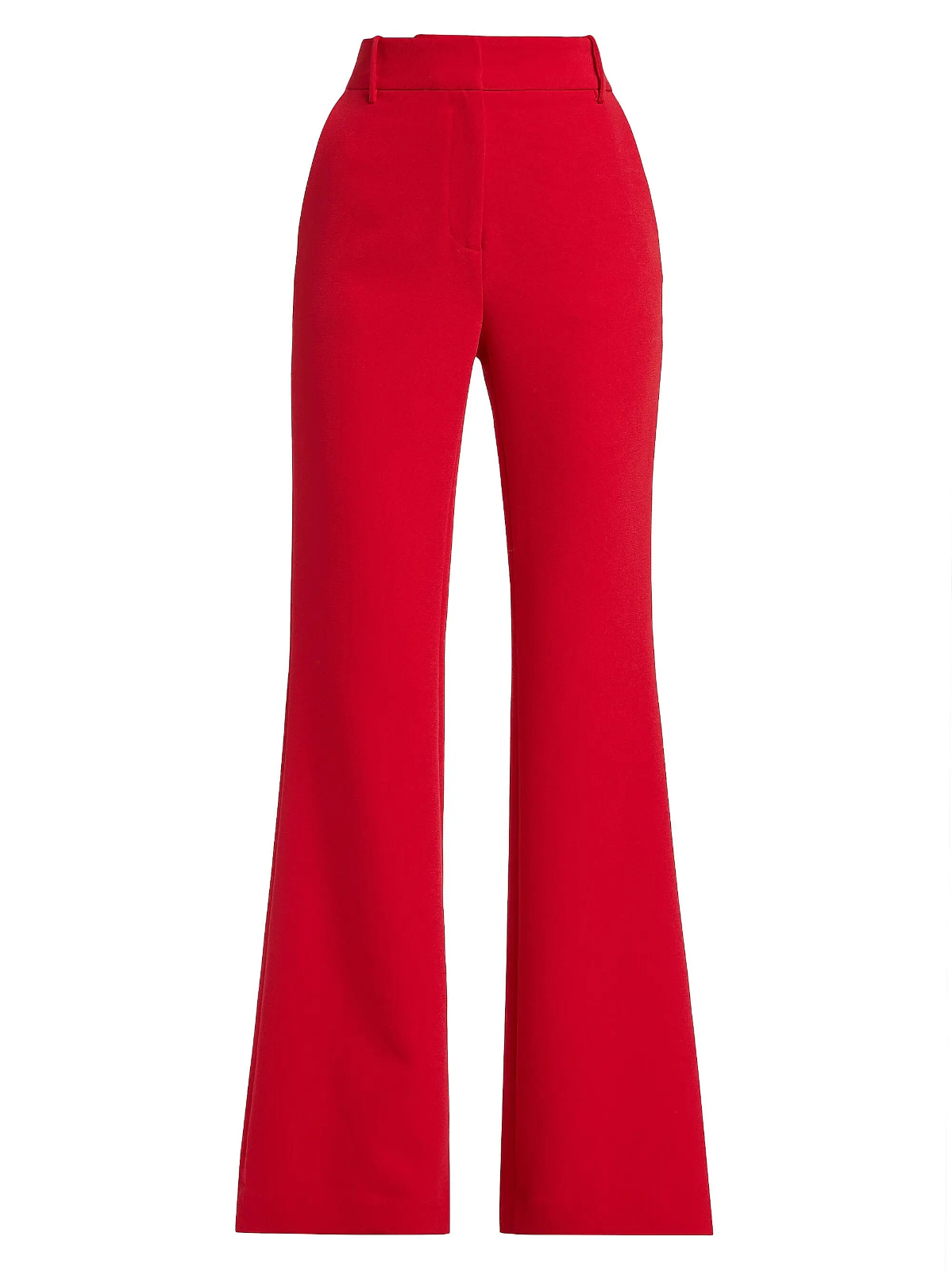 The Gaia high-rise pants from Toccin are cut in a flared silhouette and styled with side slip pockets, back welt pockets, and a zip fly with hook-and-bar closure.