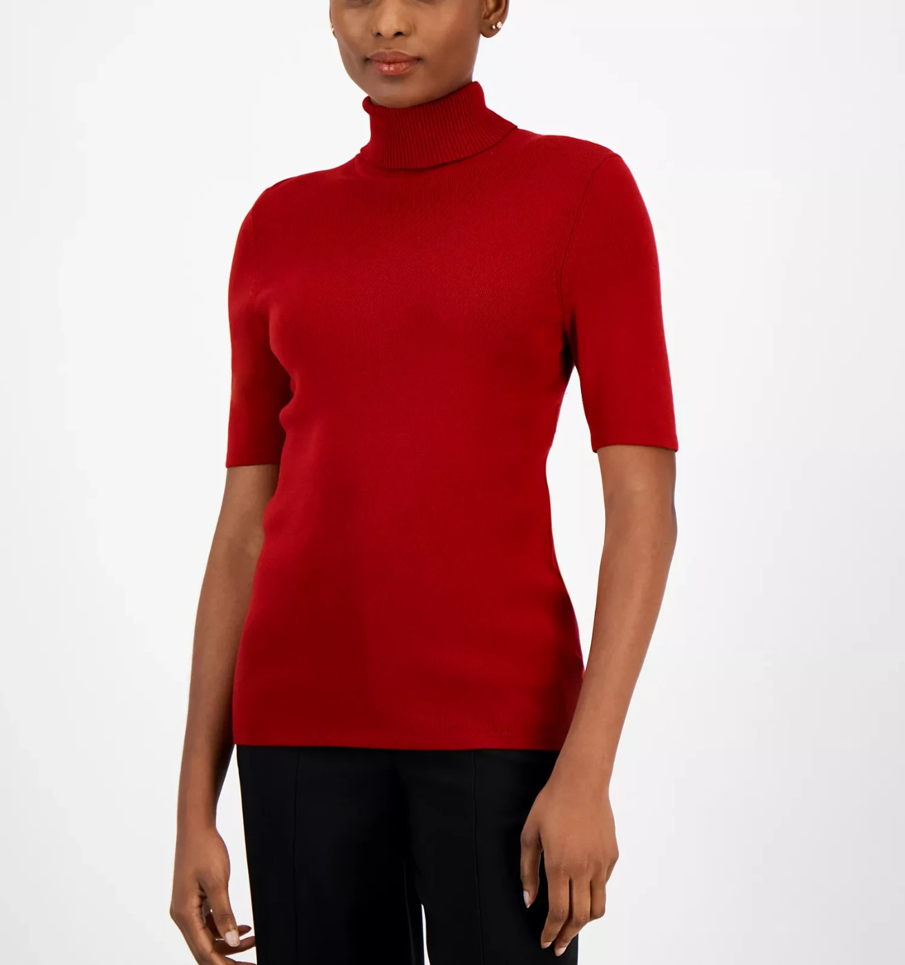 The perfect transitional piece for changing temperatures, this turtleneck sweater from Anne Klein has half sleeves you can cover with a blazer for chilly commutes.