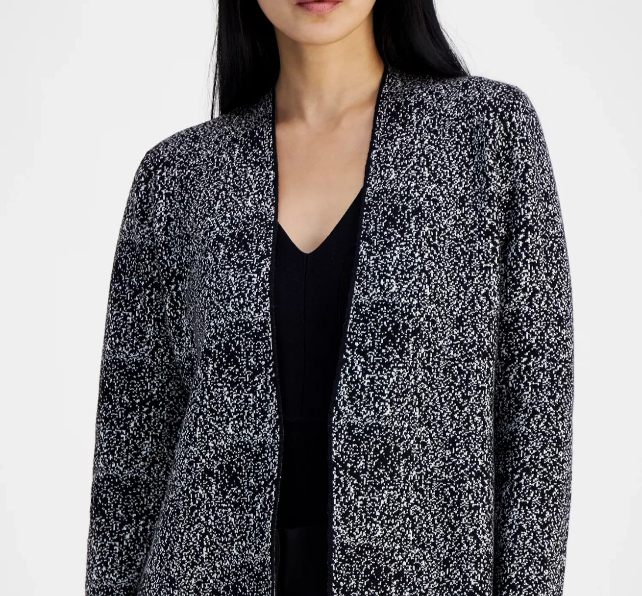 Side slits bring added movement to this fitted cardigan from Anne Klein, designed with an open front that makes it a great pick for layering.