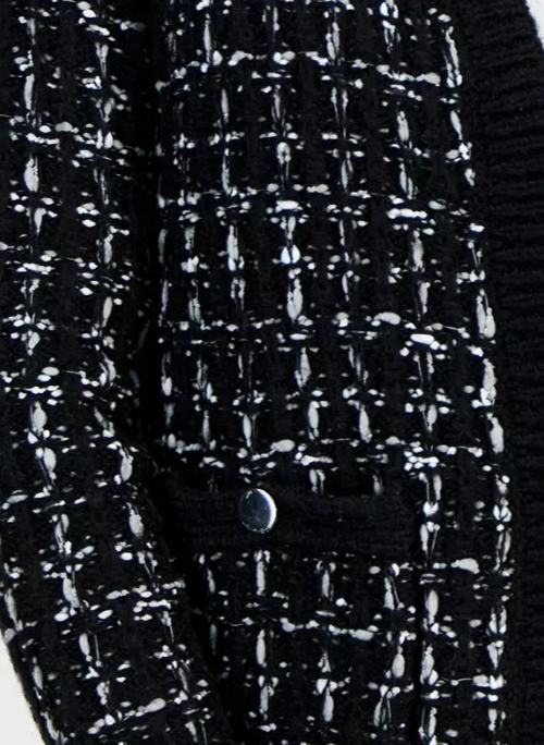 A chic mixed stitch design gives a tweed-inspired look to Anne Klein's cardigan, a versatile open front design that's ideal for the office.