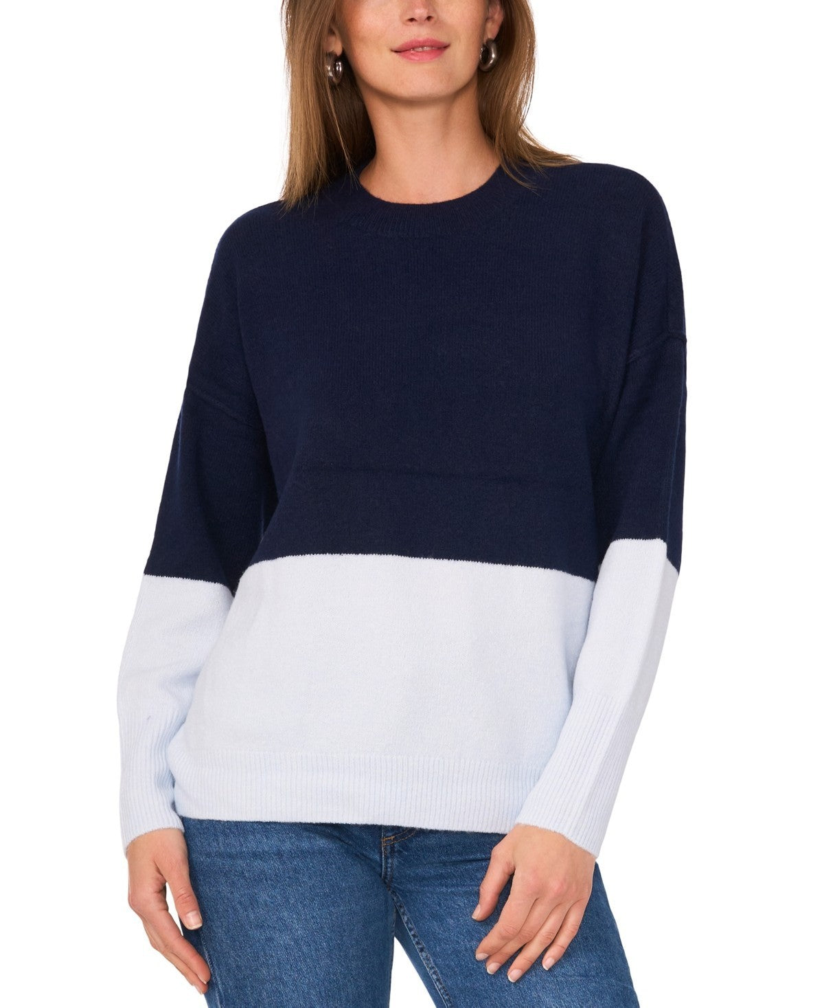Sam & Jess Women's Colorblocked Crewneck Long-Sleeve Sweater MSRP $69
