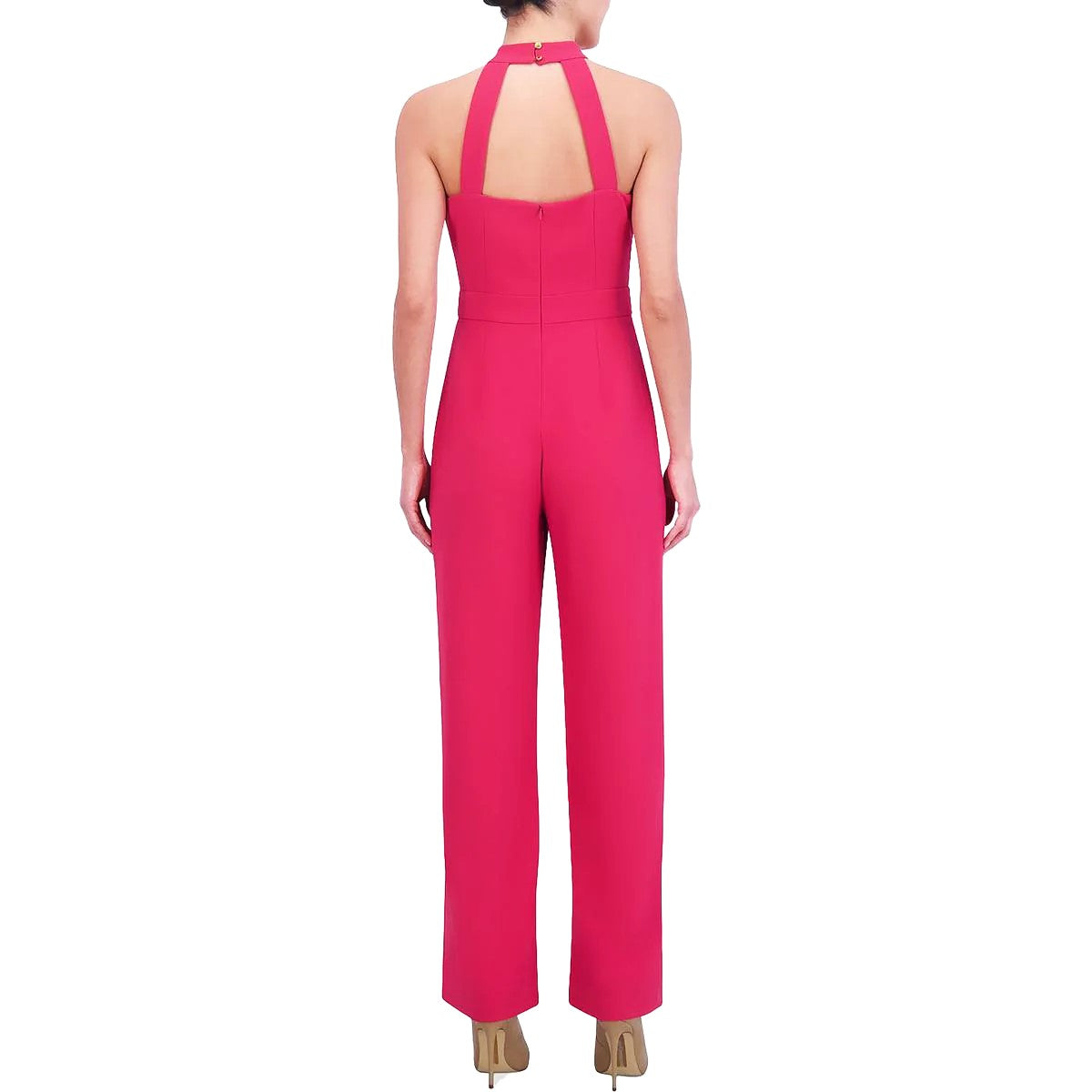 Sleek and finessed, this timelessly chic jumpsuit by Vince Camuto is defined by a polished tie-neck and vintage flared leg.